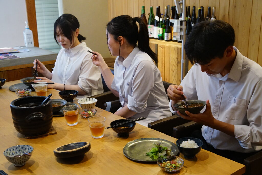 まずは賄いで仙台牛のシチューなどをいただきましたが、高校生は緊張でそれどころではない様子…。その後は掃除や洗い物、配膳準備などを一つずつ覚えていきました。