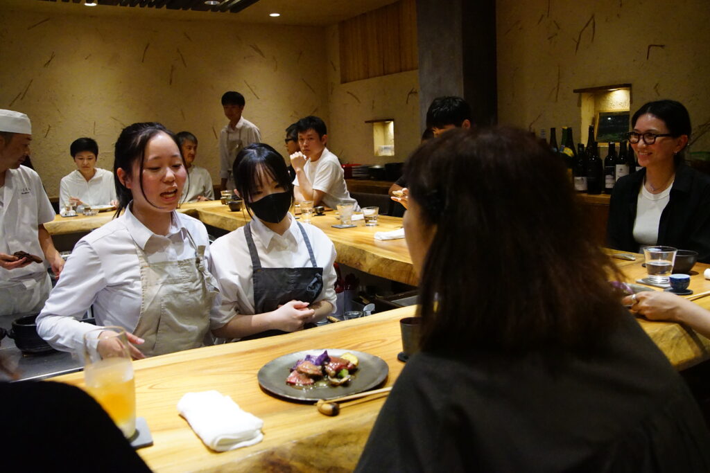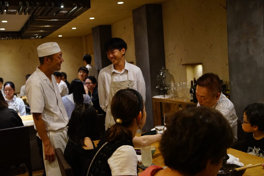 コの字型カウンターに囲まれた調理場は店主やスタッフとの距離感が近く、和やかな雰囲気が広がっていました。