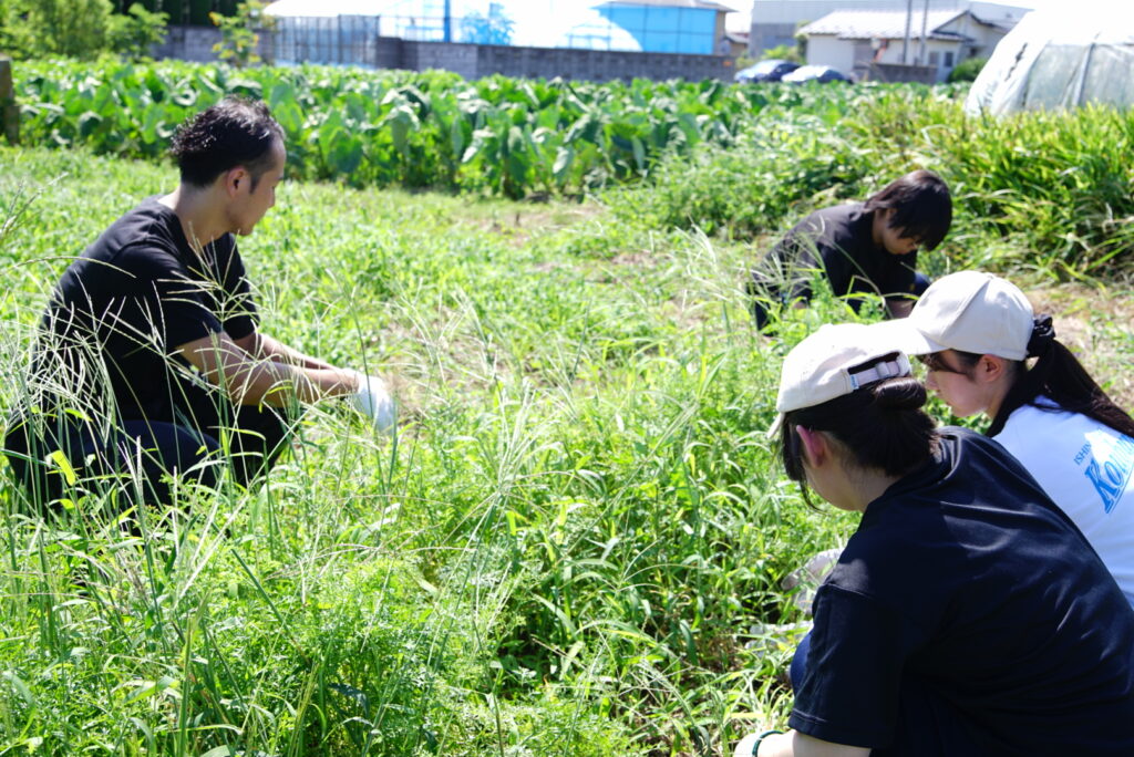 雑草は根が深く力が必要で、想像以上に大変でしたが、その分抜けた時の達成感は大きかったです。また、高校生たちと声をかけ合いながら作業を進めることで、自然に打ち解けていけたように思います。草取りを通じて、畑を整えることの大切さや、食べ物を育てるまでにかかる労力を改めて実感しました。