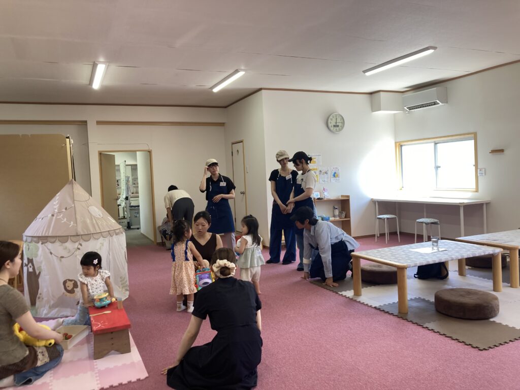 カフェでは、子ども連れのお母さんたちが多く訪れてくださり、最初は高校生もどう接したらよいのか迷っている様子が見られました。しかし時間が経つにつれ、自分から「一緒に遊ぼう!」と声をかけたり、お母さんに「子育てで大変なことはありますか?と話しかけていて少しずつ場が和んでいきました。その姿を見て、高校生たちが主体的に関わろうとする姿勢に成長を感じました。