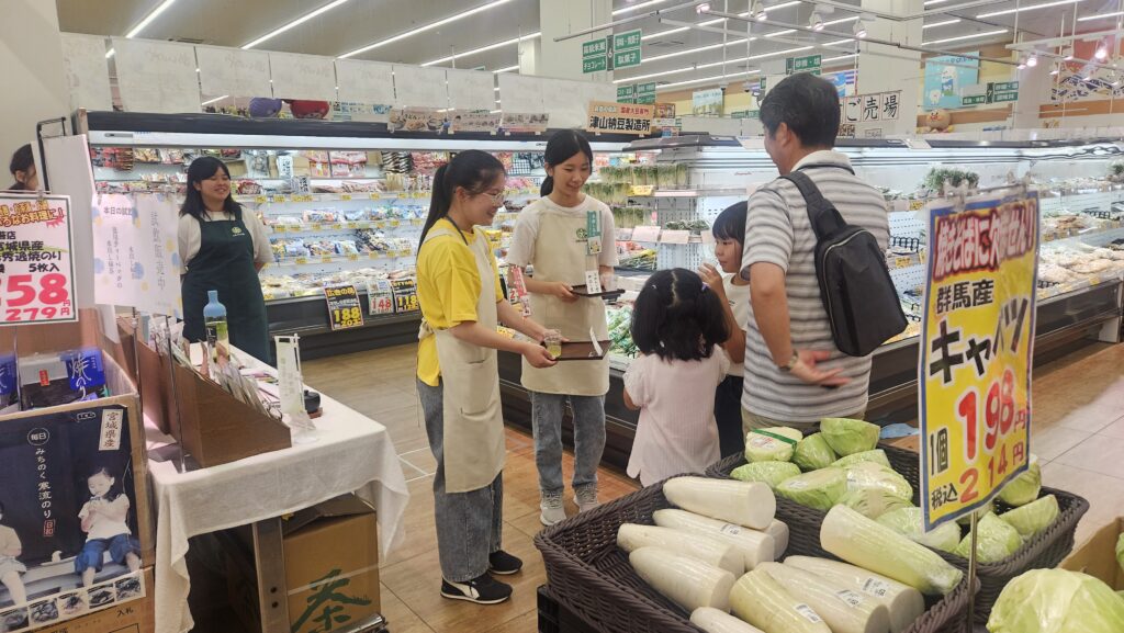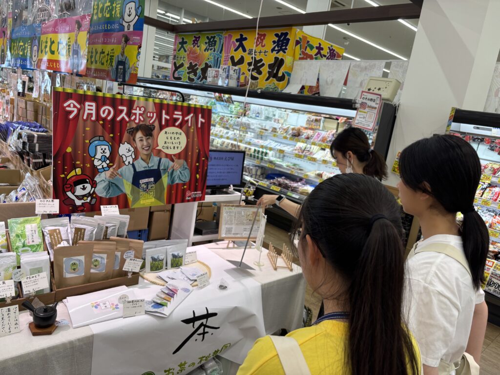 あいのや石巻のぞみ野店において、お茶の試飲会を開きお客様に2種類のお茶を試飲をしていただきました。また、お茶を買ってもらえるように声かけをし、気に入ってくれた方には実際にお茶をご購入していただきました!