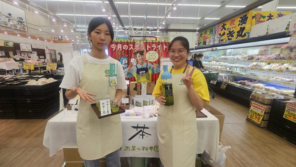 時間にかなり余裕ができたので、常連さんからいただいた差し入れを食べながらお茶の桜井園のゆかりさんと雑談をしました!その中で、お茶や地元に対する熱い想いを聞くことができて、私も参加してくれた2人の心にもジーンと響きました。常に明るくどんな時も親切に接してくれて、少しおっちょこちょいな一面も見られたゆかりさんのかっこよさを実感することができた貴重な機会でした!