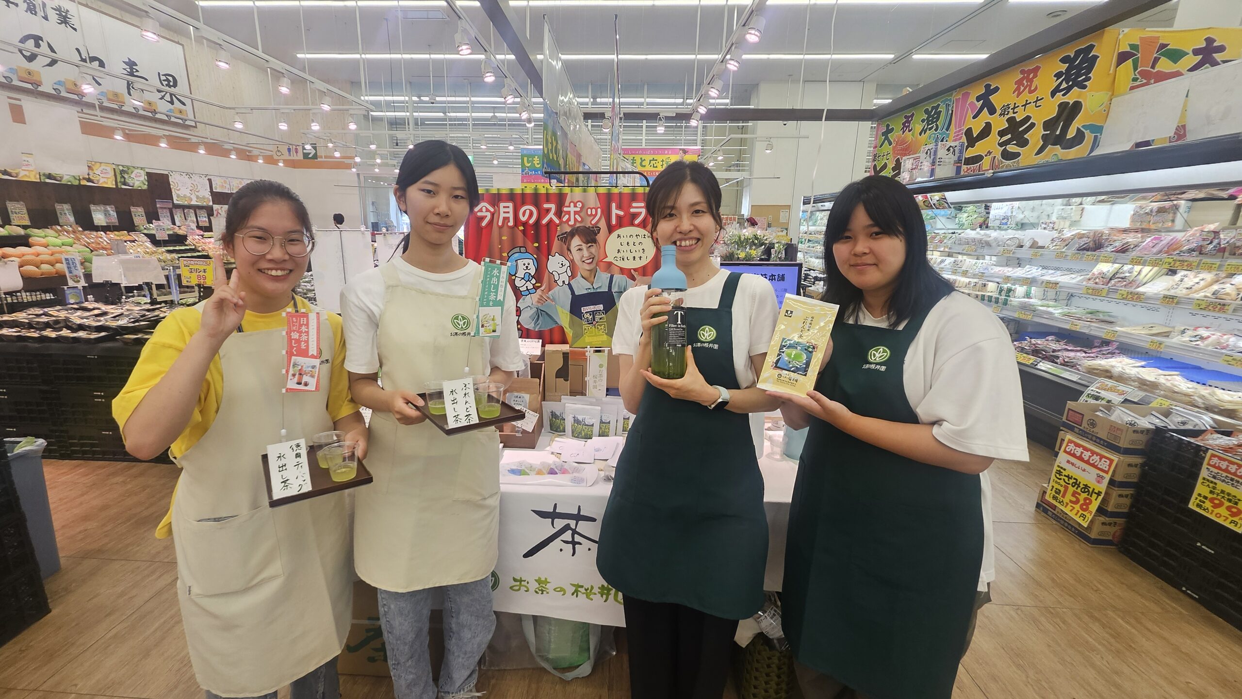 時間にかなり余裕ができたので、常連さんからいただいた差し入れを食べながらお茶の桜井園のゆかりさんと雑談をしました!その中で、お茶や地元に対する熱い想いを聞くことができて、私も参加してくれた2人の心にもジーンと響きました。常に明るくどんな時も親切に接してくれて、少しおっちょこちょいな一面も見られたゆかりさんのかっこよさを実感することができた貴重な機会でした!