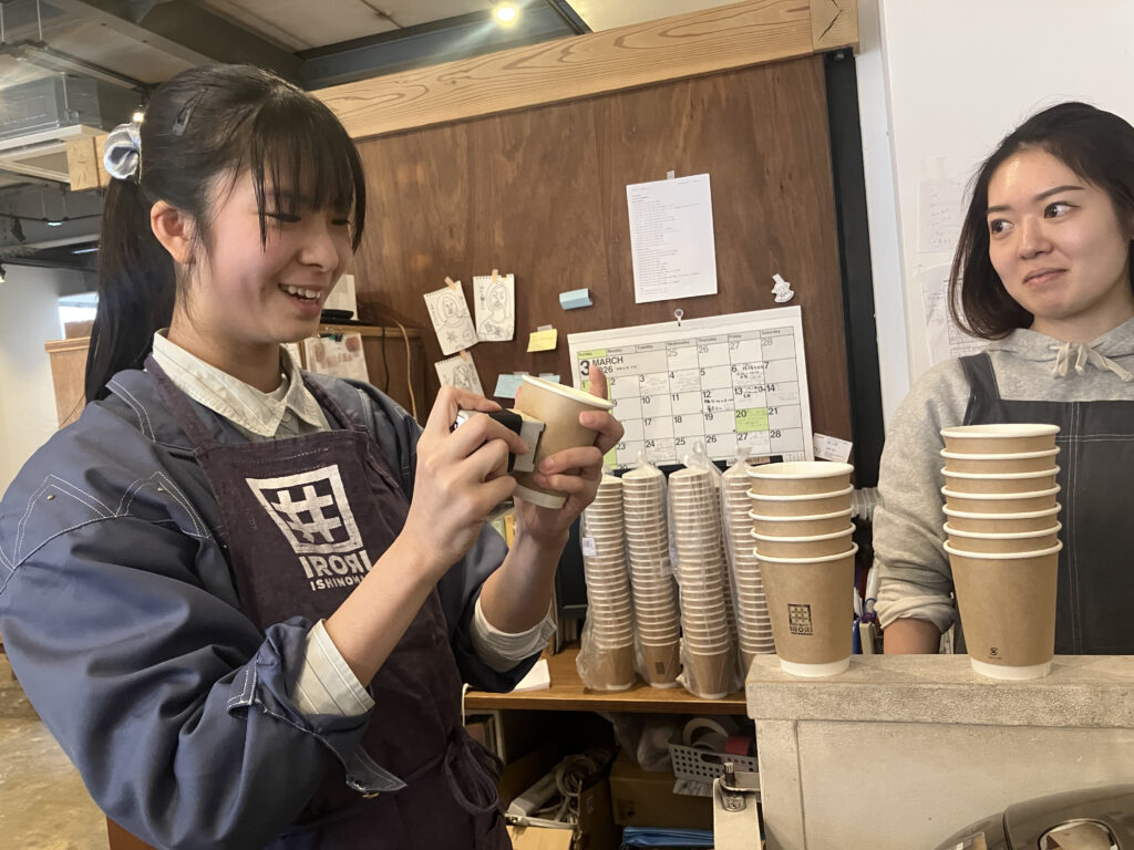 続いてコーヒー作りを教わり、スタッフの方から一人ひとり丁寧に説明を受けながら実践しました。不安そうな表情も見られましたが、実際には落ち着いて取り組み、上手に作ることができていました。提供の仕方についても学びながら、お客様へ提供する経験もできました☕️