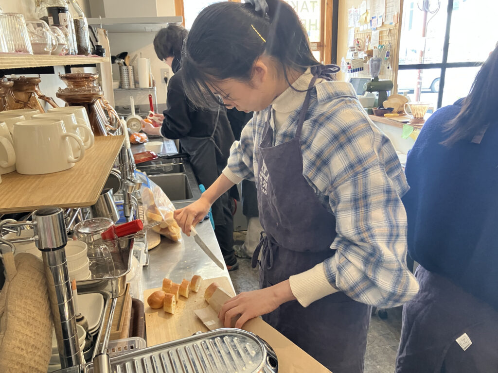 3月4日・6日の2日間、カフェスタッフとしてボランティア活動を行いました。ドリンク作りや簡単なお菓子作りを教わりながら、開店準備や材料の確認なども経験し、実際のカフェ業務に触れる機会となりました。