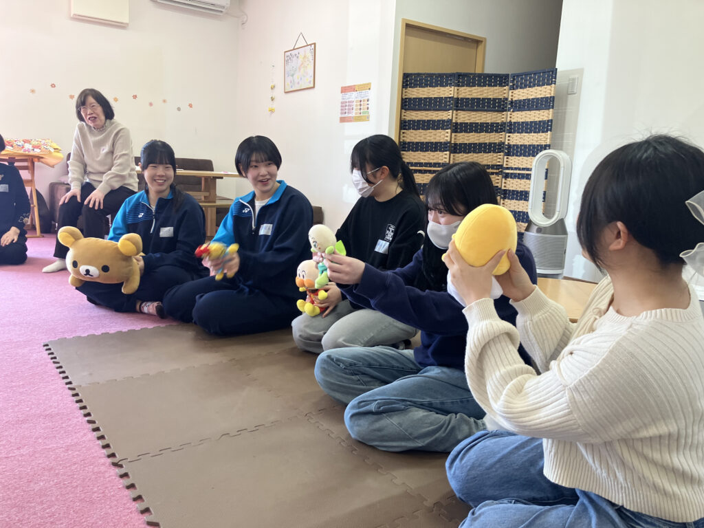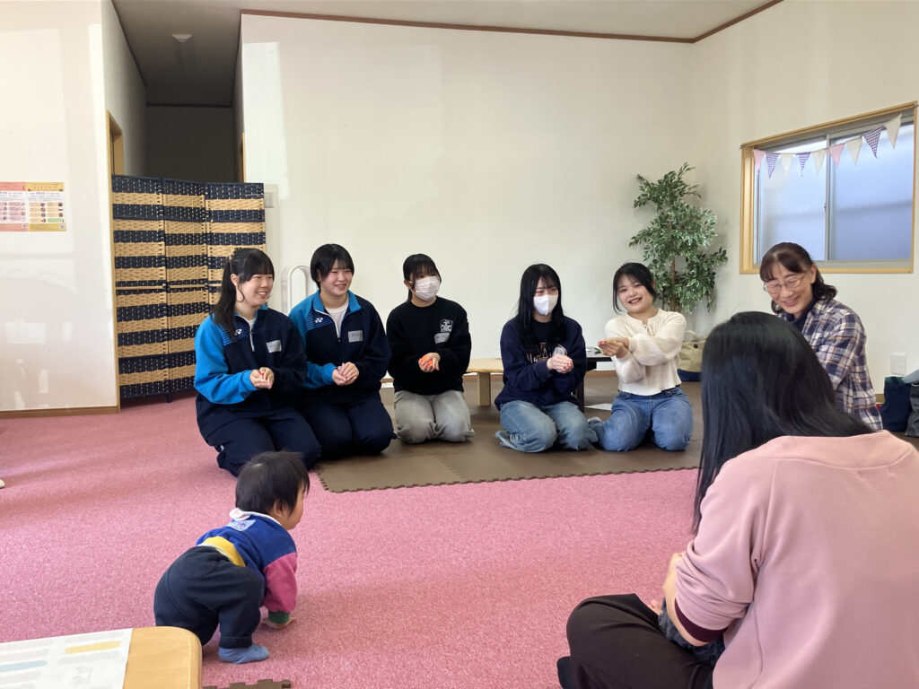 この日はわらべうたの先生も参加されており、未就学児のお子さんと保護者の方々と一緒にわらべうたを楽しみました。高校生たちは最初から表情豊かに参加し、積極的に場に入っていく姿が印象的でした。