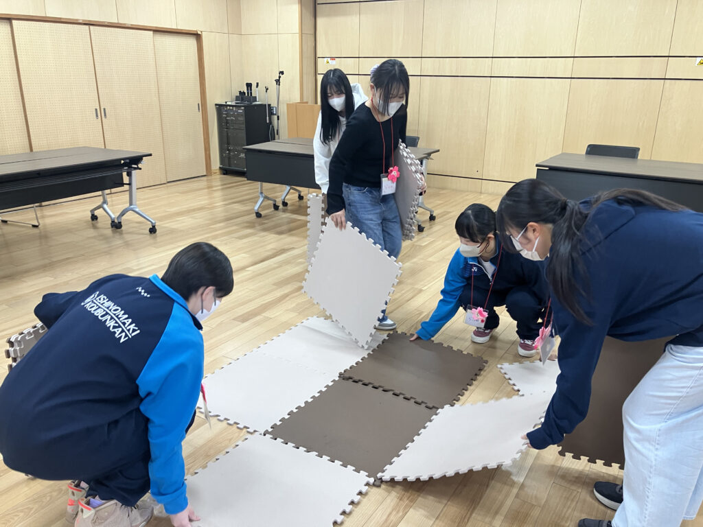 2日目はイベント準備から活動を開始しました。机や椅子の配置、不要な物の移動、子どもたちが遊ぶスペースへのマット敷きなどを協力して進めました。