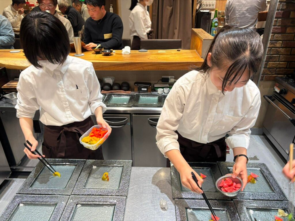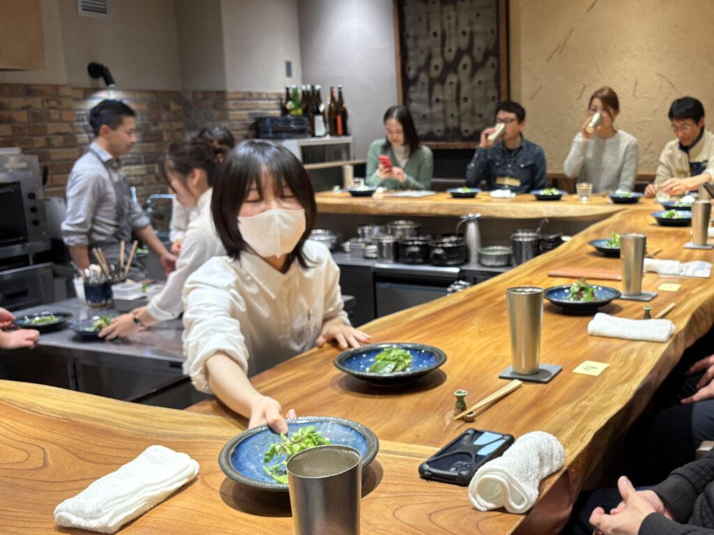 2日目はいよいよ「いまむら」の店舗へ。接客、皿洗い、盛り付けなどを体験しました。