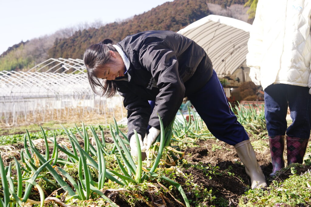 1日目は「あかま里山農園」へ行き、翌日のいまむら営業で使う野菜の収穫を行いました。